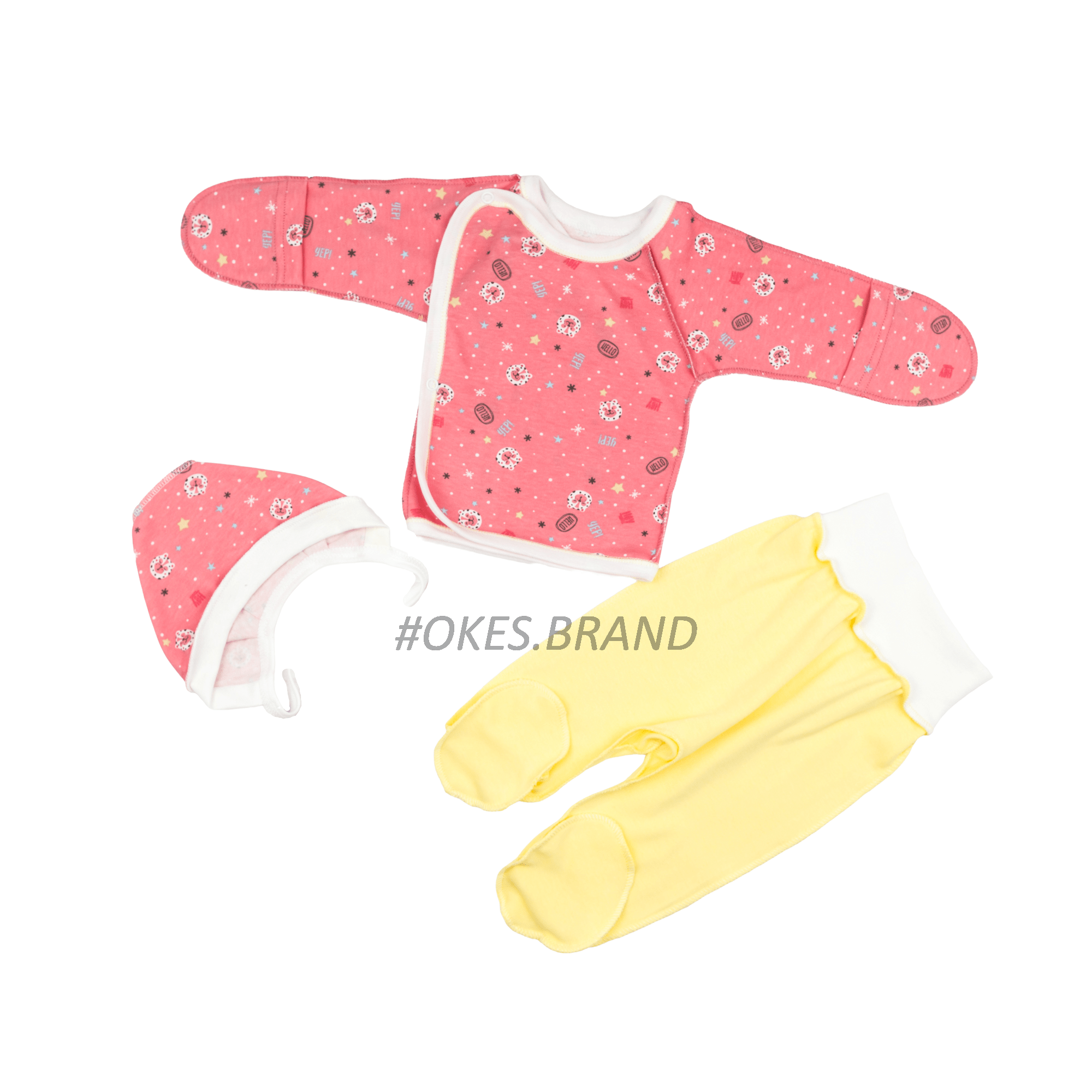 Комплект одягу для новонароджених складається з льолі, повзунків і шапочки. Пасує для новонароджених і малюків 0-3 міс.