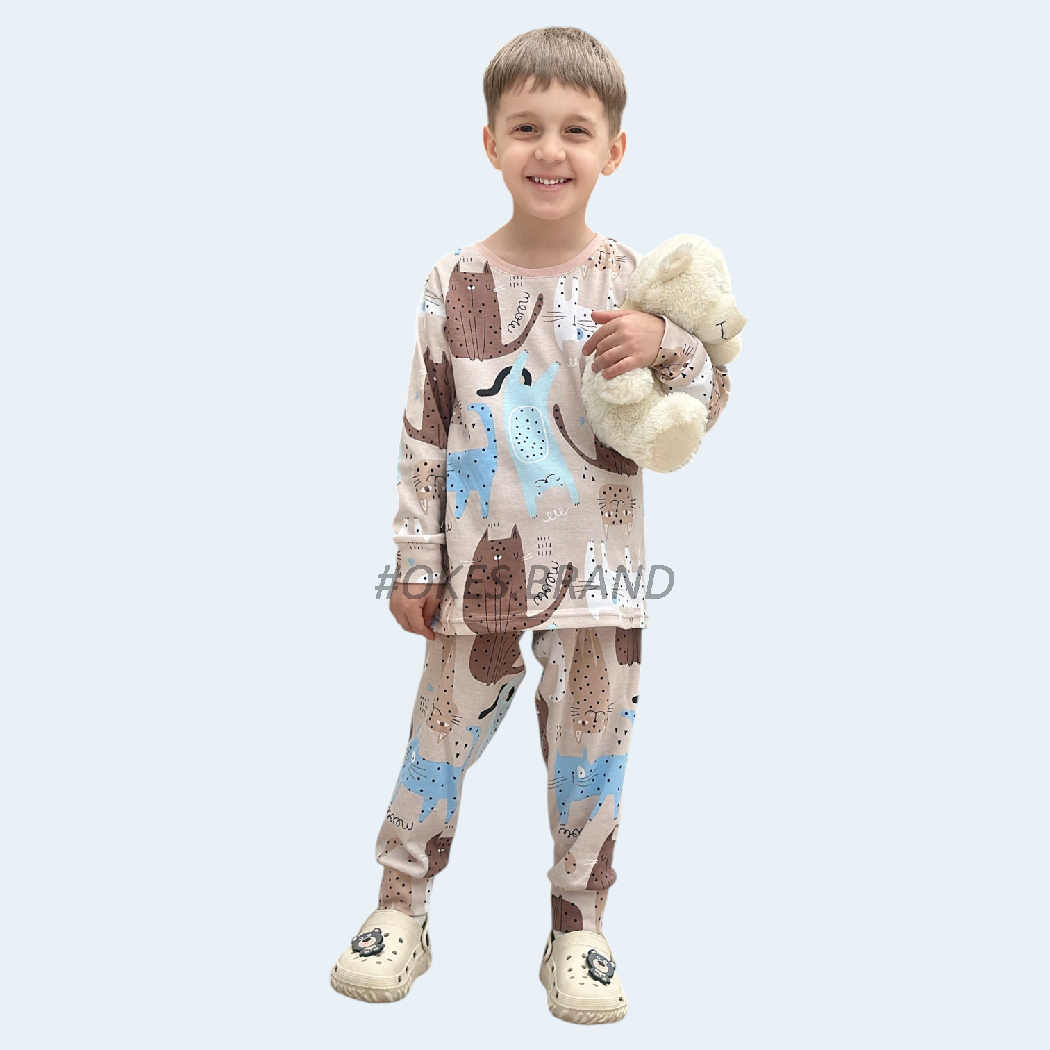 Дитяча піжама з котиками має чудовий креативний дизайн, що захоплює уяву. Вона прикрашена яскравим кольоровим малюнком котиків, який робить цю піжаму чарівною та потішною. Крій піжам дозволяє вашій дитині вільно рухатися і забезпечує максимальний комфорт під час сну.